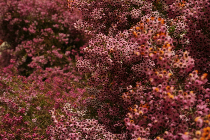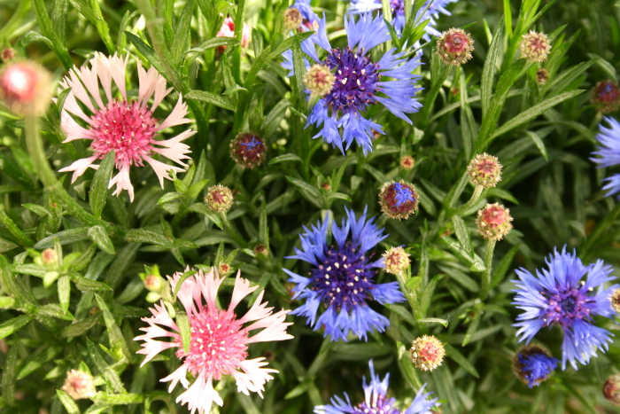 水色の花 ピンク色の花