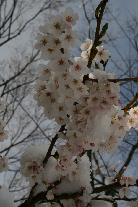 桜に雪つもる